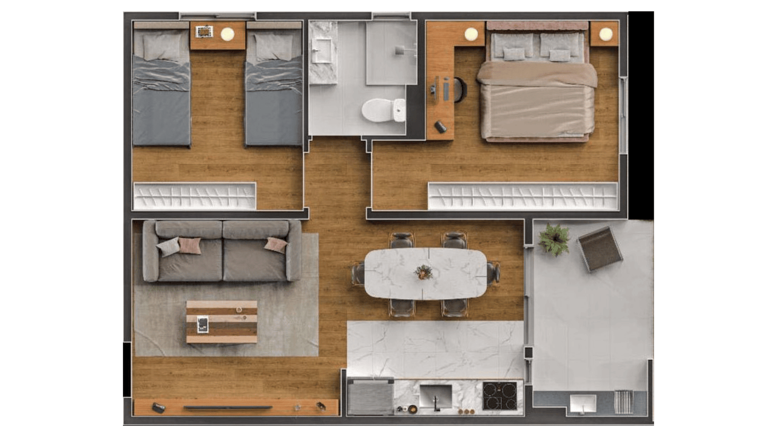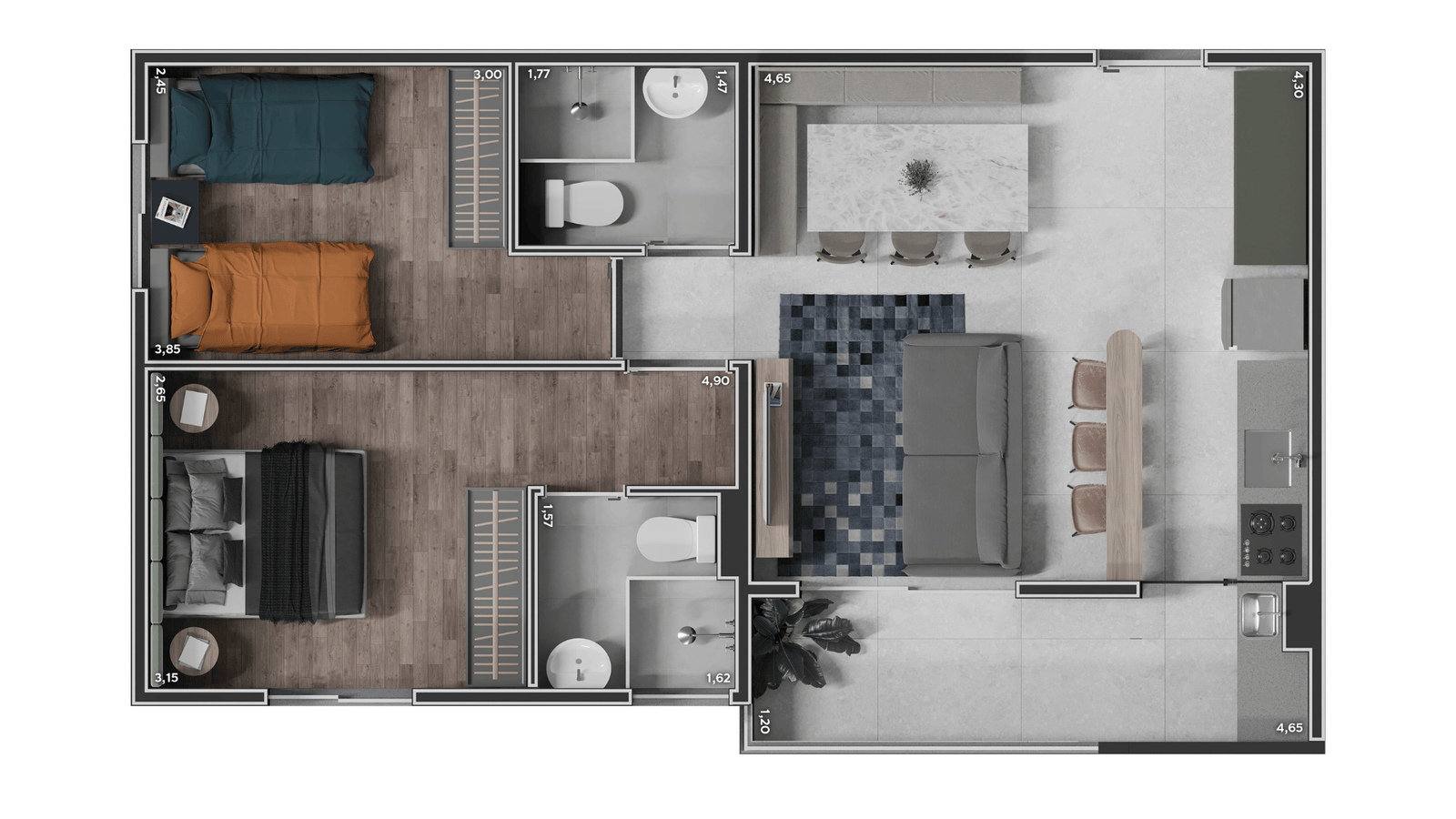 Com ambientes bem distribuídos e foco no aproveitamento inteligente dos espaços, o projeto atende quem busca conforto no dia a dia sem abrir mão de uma decisão financeira segura.