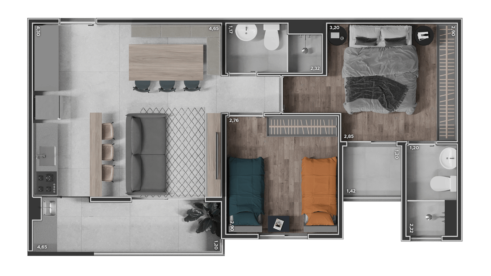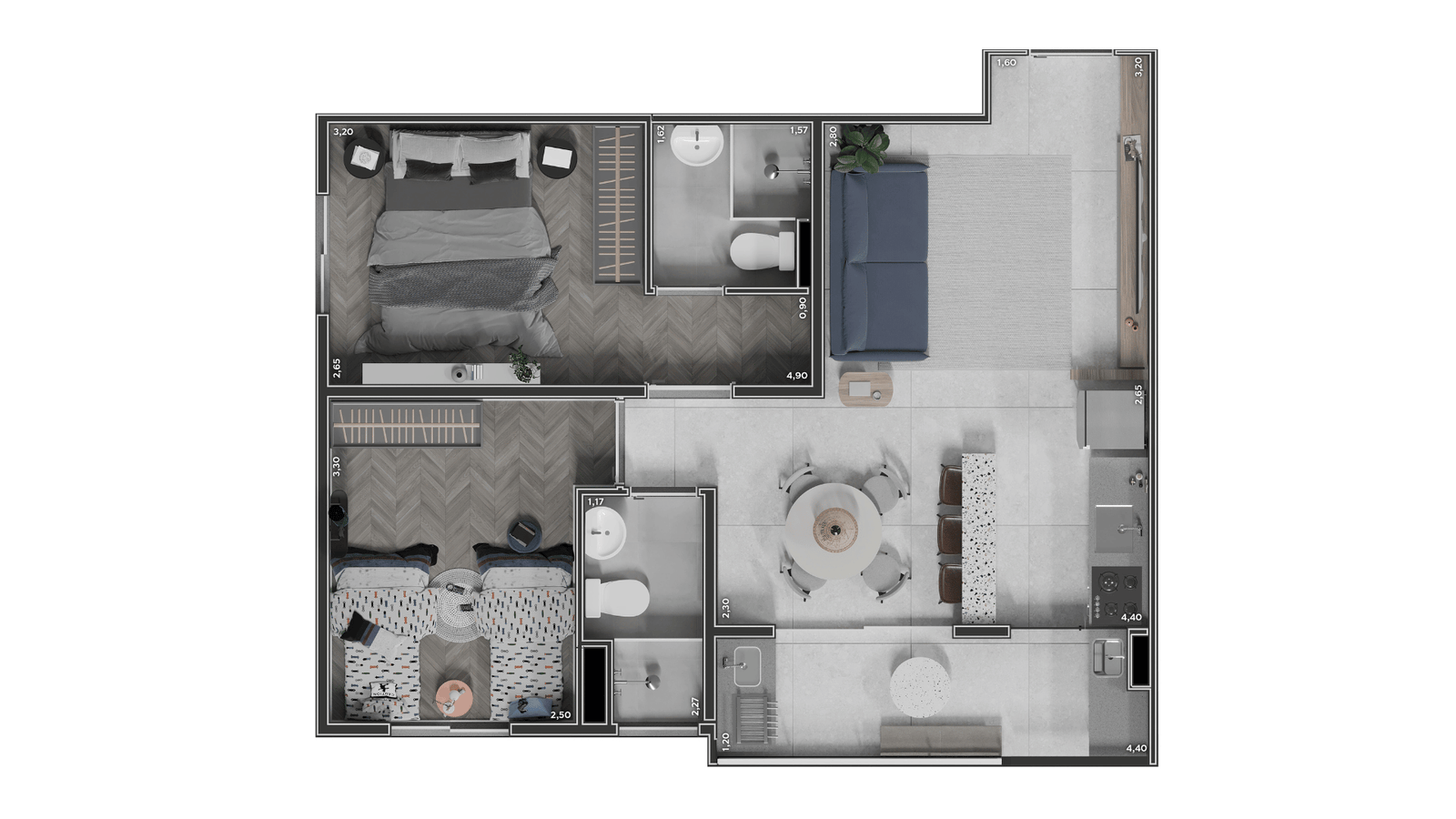 Com plantas inteligentes e bem distribuídas, o projeto oferece conforto na medida certa, sem espaços desperdiçados, ideal para quem quer morar bem sem pagar por excessos.